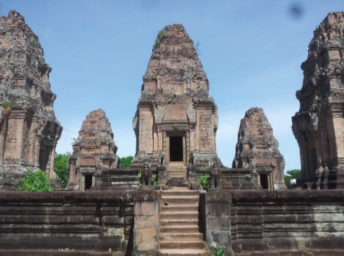 Banteay Srei is also known as the “Citadel of Women” or the “Citadel of Beauty“, Banteay Srei is a small temple complex situated near Siem Reap. What sets Banteay Srei apart from other Khmer temples is its intricate and exceptionally well-preserved decorative carvings. The pink sandstone used in its construction provides a stunning backdrop for the elaborate bas-reliefs and delicate sculptures that adorn the walls. These carvings depict scenes from Hindu mythology, including epic tales like the Ramayana*, and Mahabharata*. The level of detail and craftsmanship found at Banteay Srei is truly awe-inspiring and showcases the mastery of ancient Khmer artisans [*The battle for the throne between cousins Kauravas and Pandavas, is the focus of the epic Mahabharata. The Ramayana tells the story of Lord Ram, who was exiled. More than just epics; they also teach us about life’s ideals, triumph of good over evil, fighting for the right cause, and truth always prevail over lies].