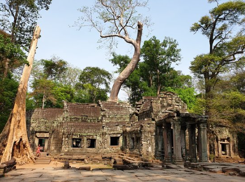 At Ta Prohm, you’ll find yourself immersed in a mystical world where nature intertwines with ancient architecture. Ta Prohm is famous for its “Lara Croft: Tomb Raider” fame, as it served as a backdrop for the popular 2001 Hollywood movie (starring Angelina Jolie). The temple is characterized by enormous tree roots that have grown over and around the structures, creating a mesmerizing and ethereal atmosphere. Walking through the temple’s corridors, you’ll witness the harmonious co-existence between man-made structures and the forces of nature. This unique blend of history and the sheer power of nature’s reclamation make Ta Prohm an enchanting and captivating destination.