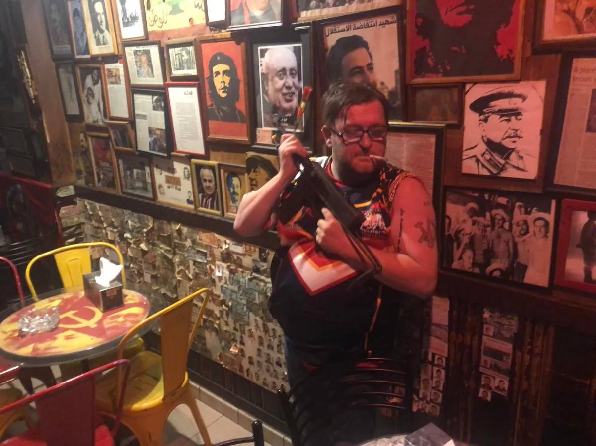 The bar is run by the wife of Abu Elie, who back in the day was a member of the Lebanese Communist Party and who fought in the Lebanese civil war.