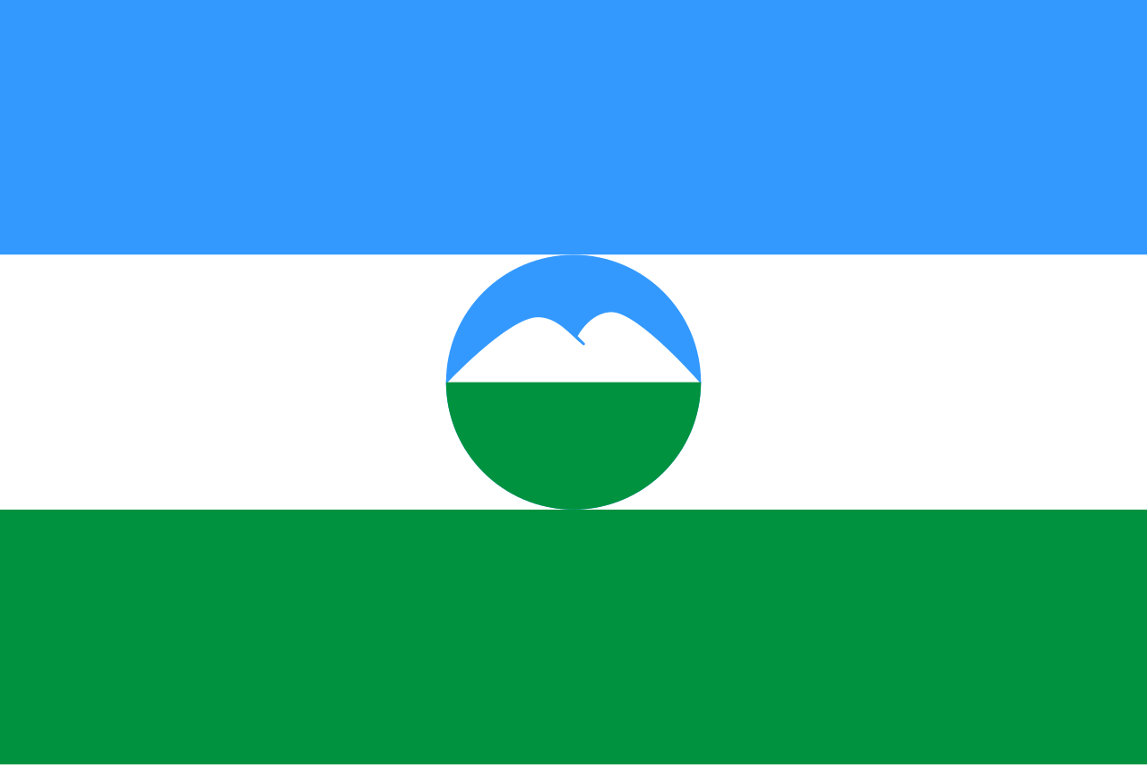 The Kabardino-Balkaria flag is a horizontal tricolour consisting of colours blue, white, and green with an emblem of Mount Elbrus. The top blue represents the Balkars and the bottom green represents the Kabardians. The Balkars and Kabardians are the two major ethnic groups. The middle colour white represents peace and unity while Mount Elbrus is symbolic of the region and people.