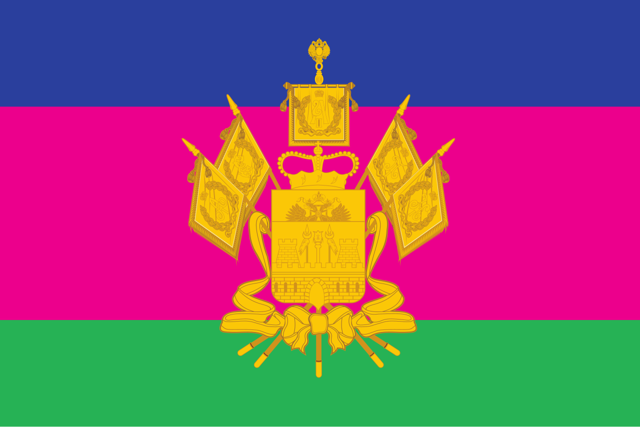 The horizontal tricolour flag of Krasnodar Krai consists of dark blue, pinkish-red and green. The flag features the regional coat of arms in the centre. The colours symbioses the diversity of Krasnodar’s cultural heritage. The coat of arms represents the regional history. The second-largest city is Sochi, see all our tours to Russia.