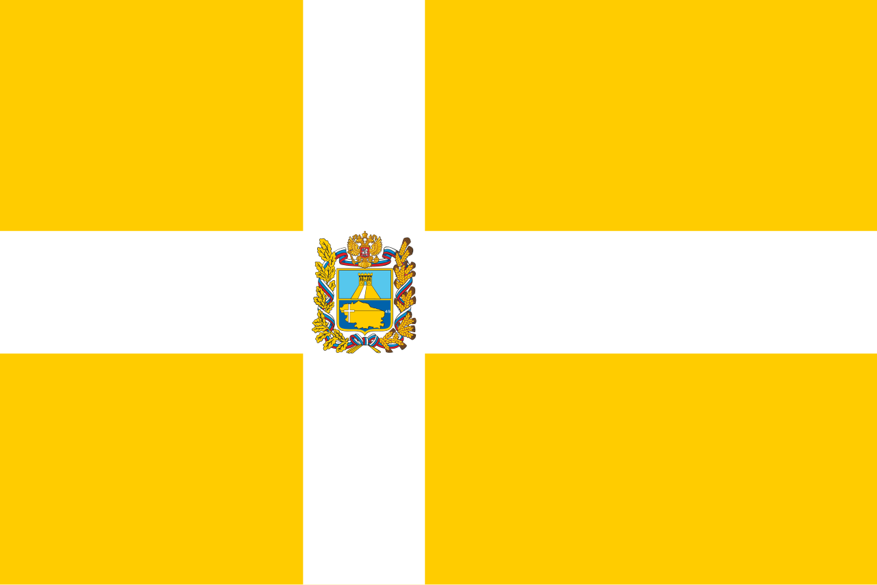 The flag of Stavropol Krai consists of golden yellow with a white Scandinavian cross which is off-centre and shifted toward the hoist. The coat of arms of Stavropol Krai can be found in the center of the cross.