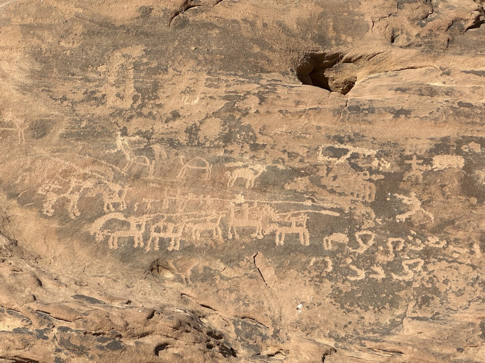 Another site we visit on our Saudi Arabia tours is the enigmatic Jubbah. This lesser-known UNESCO World Heritage Site is a time capsule, filled with hundreds of rock art panels dating back to the Neolithic period (4000-10,000 BCE) and ancient Thamudic inscriptions from around 1000 BCE.