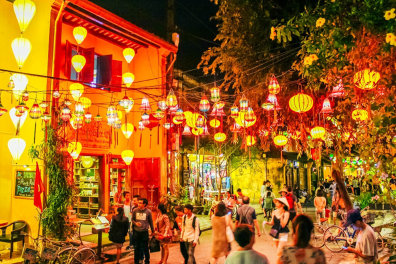 The Old Town of Hội An is pedestrian-friendly, and visitors can explore the narrow streets and alleyways lined with historic buildings, temples, and pagodas. Some notable landmarks in the Old Town include the Japanese Covered Bridge, the Assembly Hall of the Fujian Chinese Congregation, and the Quan Cong Temple. Hội An Lantern Festival takes place on the 14th day of every lunar month where the town trades its electric lights for traditional coloured lanterns.