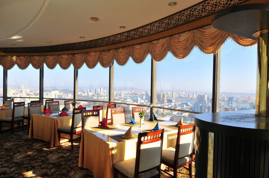 The hotel is one of the most iconic buildings found within Pyongyang’s skyline and can be easily seen from the Juche Tower, the Yanggakdo Hotel and the Grand People’s Study House.