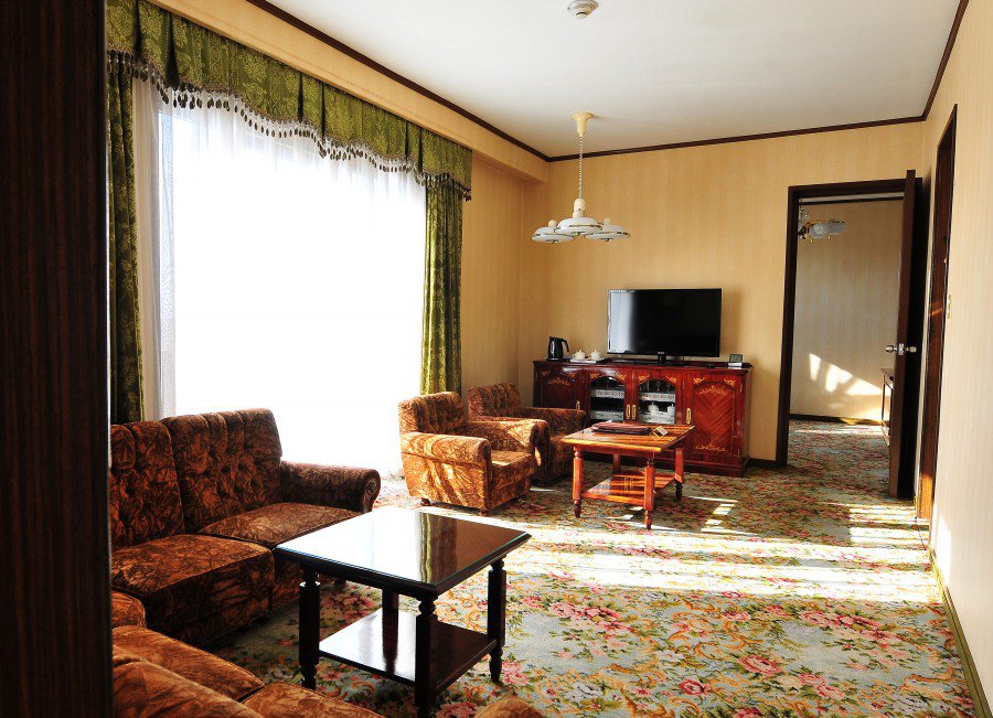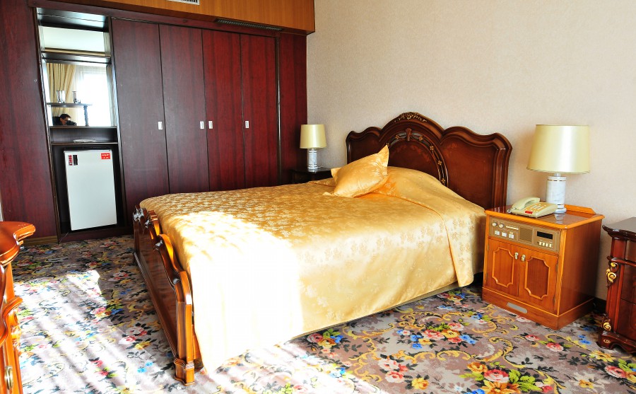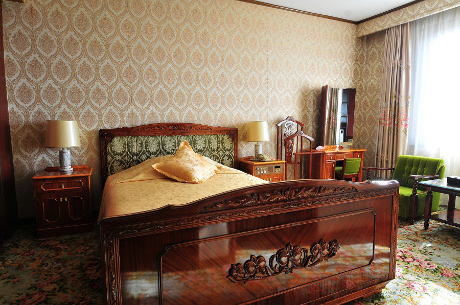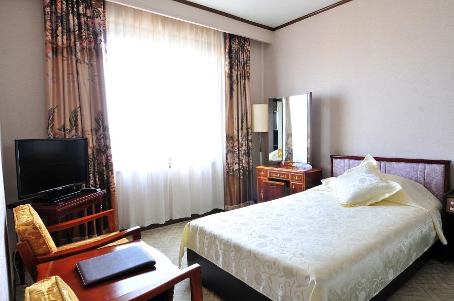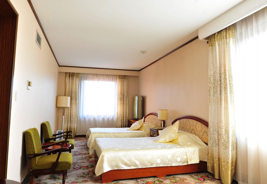 The rooms at the Koryo Hotel are wonderfully retro, they were not apart of the renovation project but have been maintained very well. Each room are spacious, complete with a living room, a coffee table, bedroom with twin or double beds, a toilet with shower and bath. All rooms have air-conditioning and the televisions here show numerous international channels.
