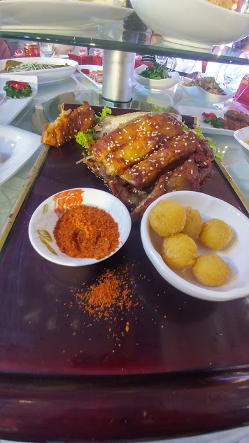Inner Mongolians have a spring tradition of eating steamed/boiled fish. As the bitter cold winter ends, carp start migrating up the Yellow River which winds through the Inner Mongolian Plains. The fish is served whole, including the bones and head, and is smothered in a savory soybean sauce. The best parts of the fish to eat are supposedly the cheeks.