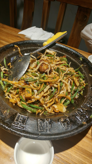 This specialty iron plan-stir fried variation is specially attributed to the small Inner Mongolian city of Bameng. It contains toasted bread on the sides
