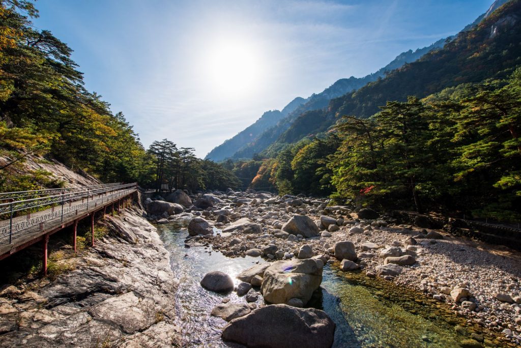 There is an observation balcony located on the top floor of Kim Il Sung’s exhibition with spectacular views of the Mt. Myohyang valley. During the rainy season the rapids can put on quite a show. Here you’re able to take a break, drink tea or coffee and sign the guestbook to record your visit. You are able to leave a comment which is then translated into Korean by your local guide.