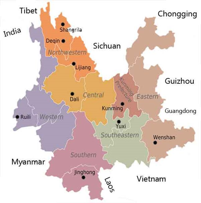 Location of Shangri-La (formerly Zhongdian), Yunnan, China.