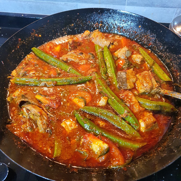 Assam Ikan Pedas (Spicy & Sour Fish Stew with Okra/Ladies Finger).