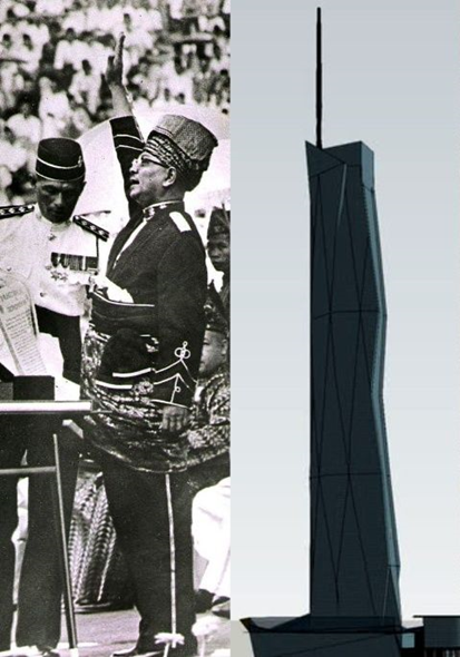 The skyscraper’s design draws inspiration from the outstretched hand gesture made by *Federation of Malaya’s first Prime Minister, Tunku Abdul Rahman on 31st August 1957, when he chanted 7 times, “Merdeka” to declare the new nation’s independence in Stadium Merdeka, which is part of the Merdeka 118 precinct.