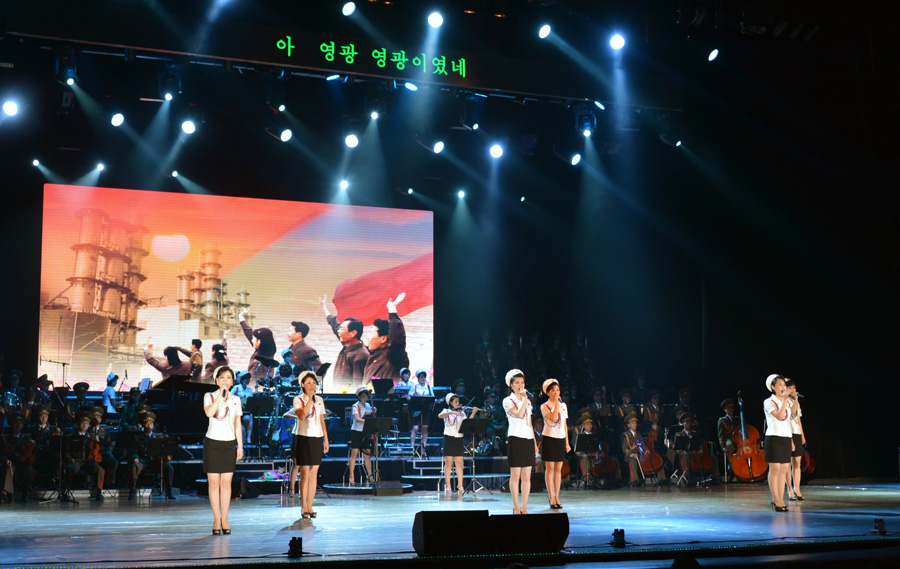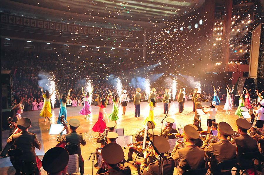 The concerts featured the Moranbong Band. State Merited Choir, Chongbong Band singers and Wangjaesan Art Troupe dancers.