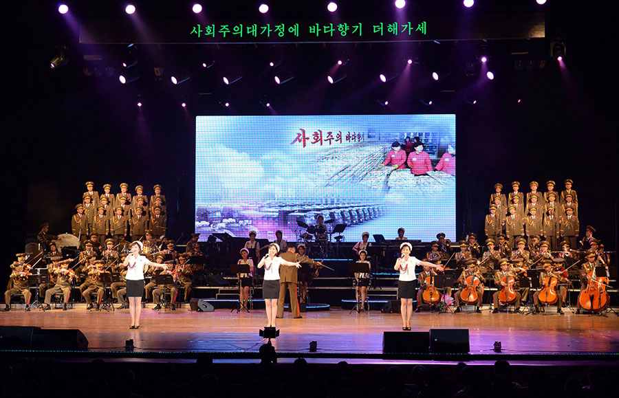 Concert Title: Joint Art Performance Given by Moranbong Band, Chongbong Band, State Merited Chorus, “Following Our Party Forever”