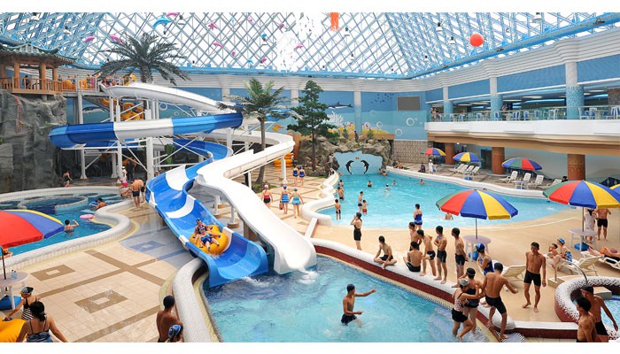 The main attraction of Munsu Waterpark in the inside swimming section which is made up of several separate pools including a wave pool and two water slides.