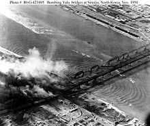 During the Great Fatherland Liberation War, War to Resist America and Aid Korea, or simply the Korean War, the US initially “accidentally” bombed the bridge, before going all and bombing the Korean side of the bridge as apart of the bombing campaign. This was done to avoid directly bombing Chinese territory (and potentially World War 3), whilst also ebbing the flow of Chinese Volunteers, such as Mao Anying popping over to fight in the war.