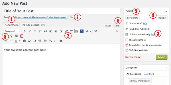 After this, research on how to use WP and start playing around with it. You don’t need to go all public right away, take your time, play with things and get it right. Always remember great content beats glitz!