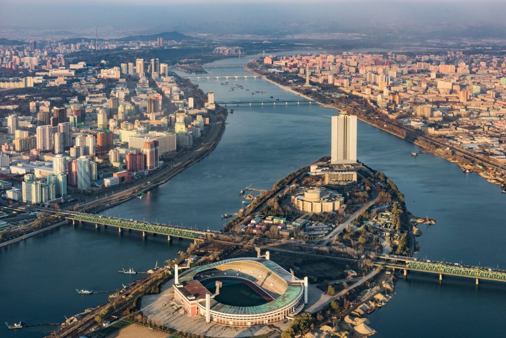 The Yanggakdo International Hotel is situated on the Yanggak Island which translates to “horn of the ram (male sheep)” because of the shape of the island. It’s located on the Taedong River which divides Pyongyang city into east and west.