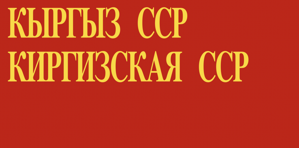 Prior to that flag, earlier designs simply featured the name of the country, written on a plain red background in both Kyrgyz and Russian. The Kyrgyz was written in Latin until 1940, at which point it switched to Cyrillic, along with other minority languages in the USSR.