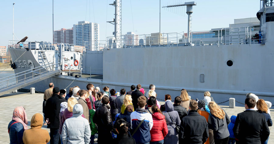 Often you will see groups of locals on a visit to the museum during your time learning about the capture of the ship, and it is a great chance to do some people watching. Visitors can range from a squad of soldiers on leave in Pyongyang, to work teams or school children on group outings. The local visitors are often as curious about you as you are them, with lots of shy and friendly smiles being shot back and forth between groups. Again, you are free to take photos on and around the ship.