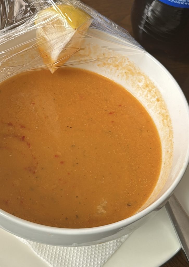 Shorba (lentil soup) is a staple in many restaurants and while it is served worldwide, there is a certain love and fondness for it in the Middle East. Often if it is not on the menu, it may be because it is being served to you as a complimentary first dish. Most hotels will also have it as a breakfast option.