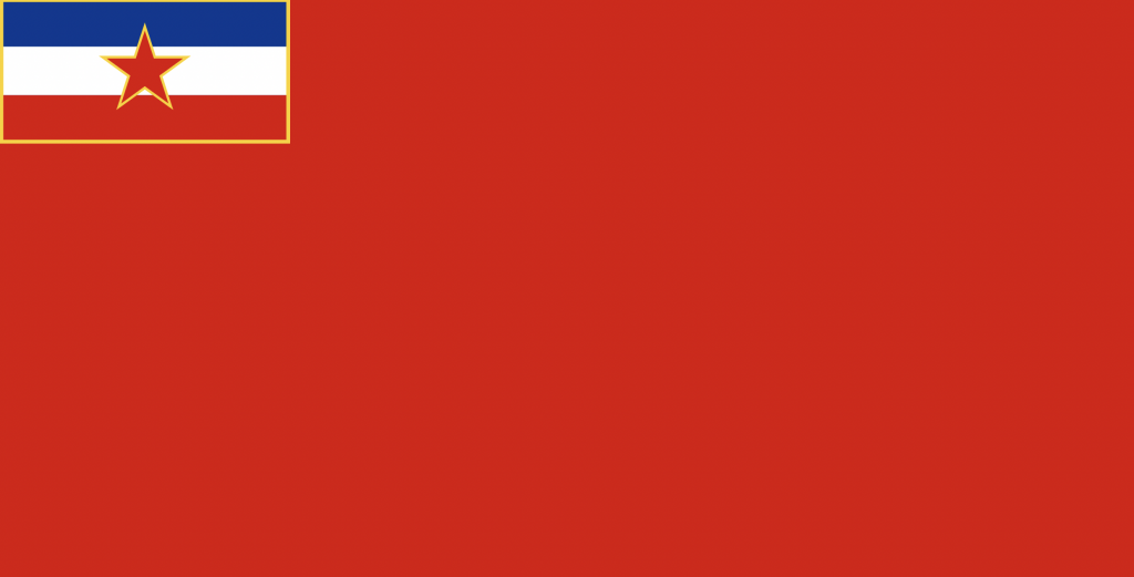 When Yugoslavia became a Socialist Republic in 1945, a large red star was added to the middle to represent the national ideology. Bosnia and Herzegovina was also given its own flag, albeit an uninspiring red banner with the national Yugoslav flag in the top left.