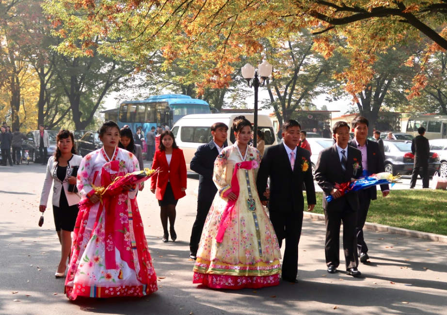 Love is in the air and Pyongyang is practically crawling with wedding couples posing for wedding photographers. Traditionally, Autumn and Spring are known as being the seasons with the least “evil spirits,” not to mention featuring glorious Autumn colours perfect for wedding photography. You may even be lucky enough to meet a wedding couple happy to pose for a photo on their big day.