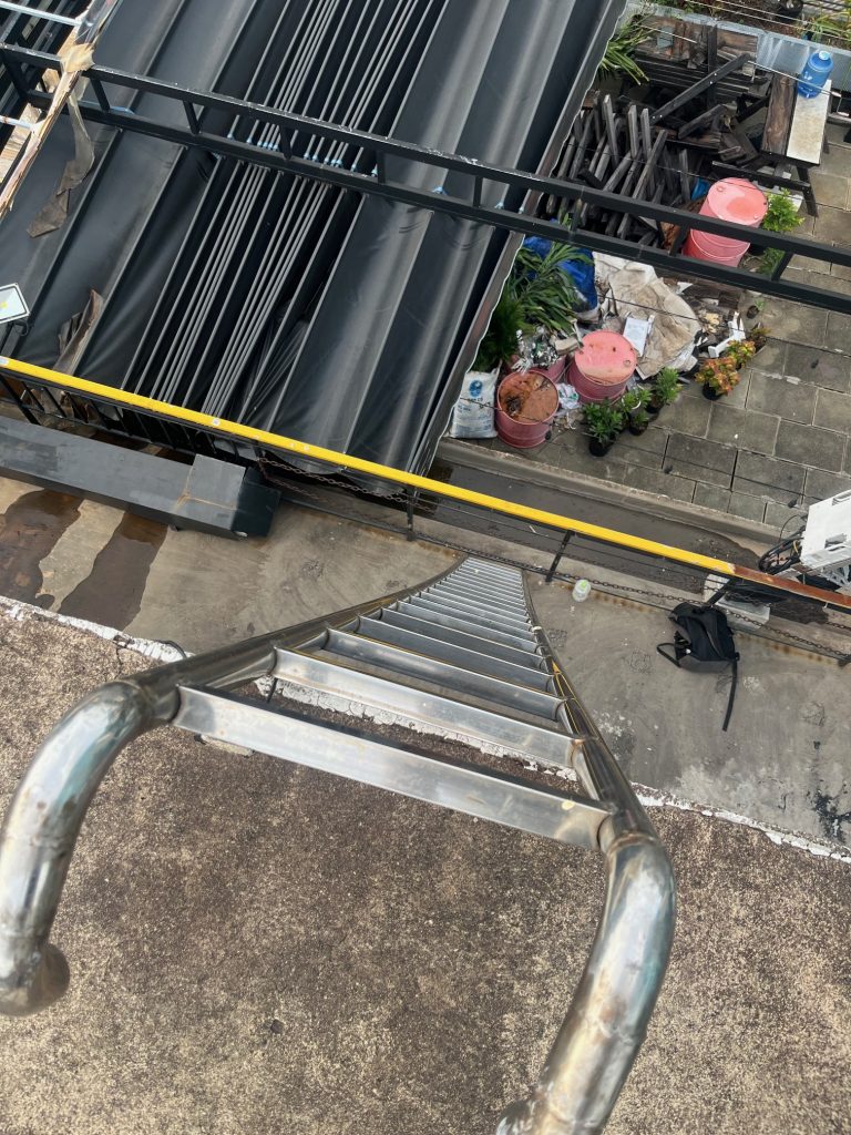 Therefore, you might feel a bit unofficial when entering, but it’s also not unusual. Up and about, you can even climb a slightly shaky ladder to the very very top of the “helipad”. Unfortunately, it’s not the original ladder, but it just serves to bring you closer to the feeling of heading for a way out under precarious circumstances.