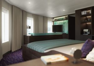 The Hondius is currently being built in Croatia and will have the capacity to hold 174 passengers in 82 cabins. These cabins go from the enormous Hondius suite of 35 square metres down to the quadruple porthole cabins which are much more economical and yet still very comfortable. Be sure to book fast because at 3600 euros on our tour, these will sell out in no time! The most common type of cabin on the ship is the twin porthole cabin, which we can offer at 5200 euros.