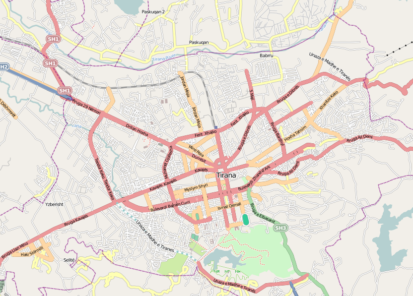 Tirana extends at the Plain of Tirana in the center of Albania between the mount of Dajti in the east, the hills of Kërrabe, Sauk and Vaqarr in the south, and a valley to the north overlooking the Adriatic Sea. A great 360 degree view of Tirana and the hills that surround it can be seen from the spinning restaurant in downtown Tirana, in the Bloku district.