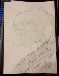Before I know it, a guy about my age speaks to me in Korean (too quickly for me to understand) and thrusts a piece of paper in my hand. He’s given me a sketch of someone (it’s either him or me?) and before I can work out the message he’s written he disappears back into the crowd. Ms. Pang translates it for me, telling me he’s written: “Long live the eternal friendship of DPRK and Australia.” Absolutely humbled, I looked around hoping to see the man to thank him properly. My initial, small desire to connect with my two Korean guides via music was blown out of the water. Could this be… my very first act of musical diplomacy? Once again, music saves the day! I took a moment to myself, holding back a small tear of pride before rejoining the group – and showing off arguably the best and most personal souvenir of my trip.