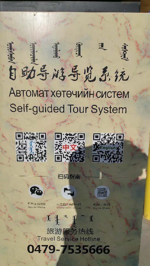 Below on the left is a picture I took on the Mongolian/Chinese border. The top is a traditional Mongolian script with Chinese characters below it. On the third line, you’ll see Mongolian Cyrillic script which was borrowed from Russian, and of course English at the bottom