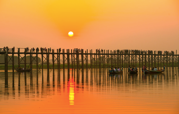 Last but not least, another stunning alternative for a unique sunrise and sunset. The U-Bein Bridge is the world’s largest teak footbridge; at 1.2km long, it twists it way across Taungthaman Lake. Built in the 1850’s with salvaged teak wood from the palace of Amarapura, this is one of the most iconic and photographed spots in Myanmar—and for good reason. This sunset spot is one you don’t want to miss.