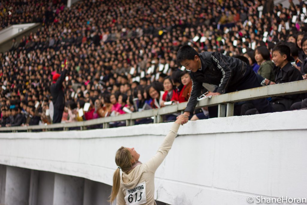 5) This shot was taken moments before the start of the Pyongyang Marathon in April. 2015 didn’t start the way we would have liked, with the border closure over the Ebola crisis. Travel was banned from October 2014 to March this year It wasn’t until the Pyongyang marathon of mid – April that the year really kicked off with a bang. On the morning of Sunday April 12th, Kim Il Sung stadium was filled to a 50,000 strong capacity and thousands more lined the streets outside. After months of complete isolation suddenly there were scores of foreigners in the capital receiving an overwhelmingly warm welcome from the locals. This brief moment of engagement above captured the emotions that were in the air on that crisp morning. As the participants were warming up for the race and waving to the crowd, an American runner and Korean spectator went in a little closer for a proper handshake.
