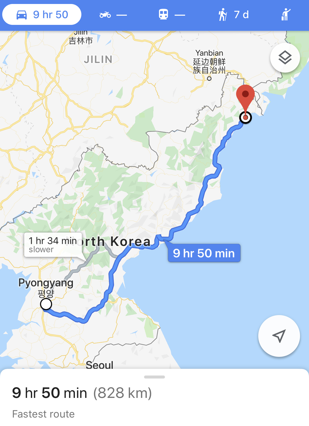 Not quite. North Korea’s railroad infrastructure is not quite as developed in the north-east as along the Sinuiju-Pyongyang route, and so there were a few delays as we made way for other trains (including a fair few military ones). Accounting for the delays, the train took around 40 hours.