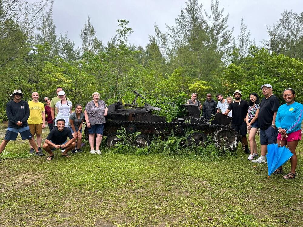 To round off the day, you will hike up to the 300-foot-high peak of Umurbrogol Mountain. This is where the bulk of over 500 heavily-fortified caves and tunnels under Japanese control were located. The Umurbrogol Mountain was nicknamed “Bloody Nose Ridge.” The pre-landing naval bombardment destroyed virtually all vegetation on the ridge. This meant that advancing US soldiers had nowhere to hide and casualties here were enormous. At the summit stands a poignant memorial honoring all who lost their lives here, inscribed with the solemn words: “LEST WE FORGET.”