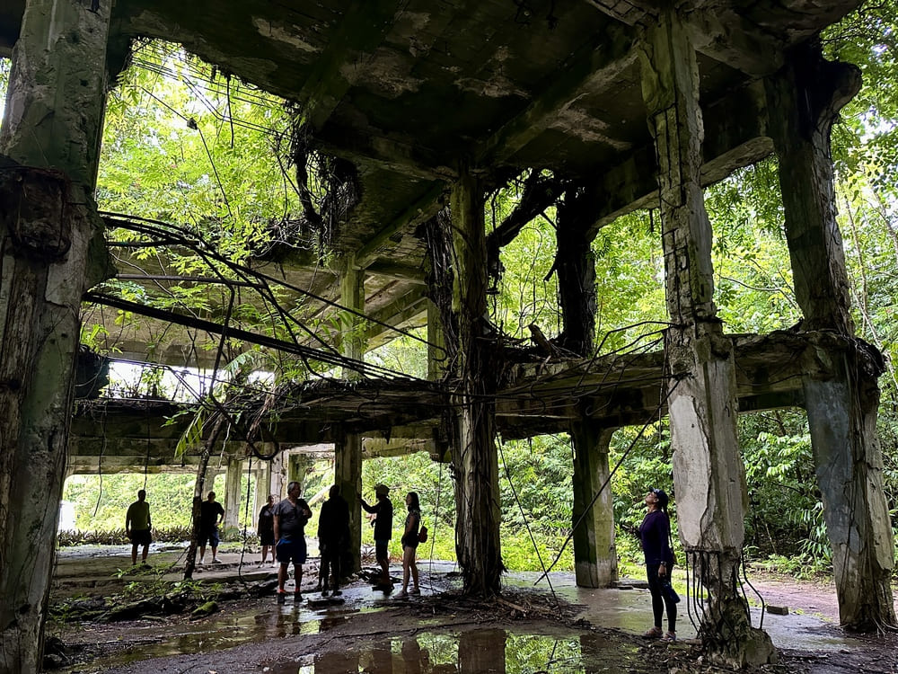 When you take a tour around the island, you are warned to stay on the marked trails, as unexploded ammunition still can be found in the jungle.