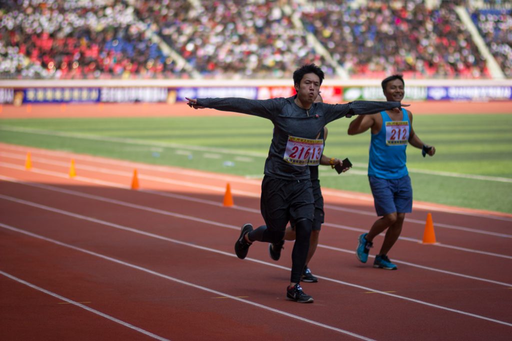 At two hours, thirty-nine minutes, the first full marathon runner entered the stadium to huge applause from the audience. Mads Hey, traveling with Young Pioneer Tours, went onto achieve a personal best time of two hours, forty minutes and what an arena to do it in! 50,000 cheering North Korean spectators carried the young Norwegian to the finish line and for his efforts, later received a standing ovation during the medal ceremony and was awarded with a DPRK-made ceramic vase.