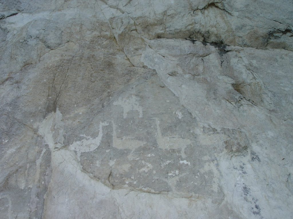 Firstly, its unusual colour – pinkish-white, which gets more pale or intensive in hue depending on the time of the day and the angle at which the Sun rays fall on it. Secondly, its world famous petroglyphs – over 60 carvings in the rock surface (covering the area of 40 square meters) dating back to the Bronze Age – Late Iron Age (2000 B.C. – 1000 A.C.), i.e. the oldest carving is about 4000 years old! The carvings depict human figures (horns on the heads are suggestive of their shaman origin), animals (deer, oxen, dogs), birds (geese, swans). Academician A.P.Okladnikov the founder of Siberian Archaeological school, a scientist of the Siberian Branch of Russian Academy of Sciences in Novosibirsk, the third biggest city by populationin Russia