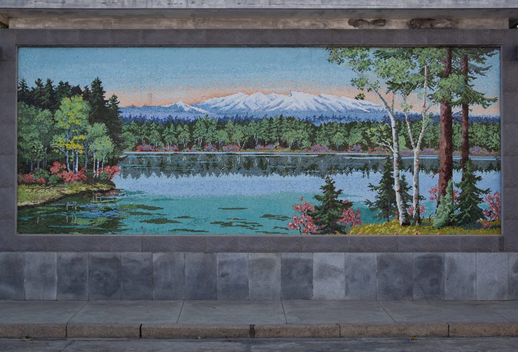 A short drive out of the city, when arriving at the factory compound don’t miss the beautiful mosaic of Mount Paektu in the carpark area nearby the gate, it is extremely photogenic. The factory’s grounds are immaculately manicured and are dotted with red flags with slogans to encourage the workers. You will have a brief walk through these before entering the buildings proper.