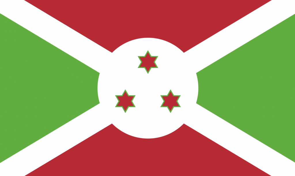 At the centre of the cross are three red, six-pointed stars, features which are not coincidental. These stars represent the values of “Unity, Work, and Progress,” the motto of Burundi, which guides its national aspirations.