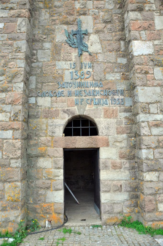 The Gazimestan Monument is an imposing structure featuring a massive stone tower and an open-air platform. The tower is adorned with mosaic art and inscriptions that convey historical and patriotic themes. The monument is highly symbolic and serves as a tribute to the bravery and sacrifice of those who fought in the Battle of Kosovo Polje.