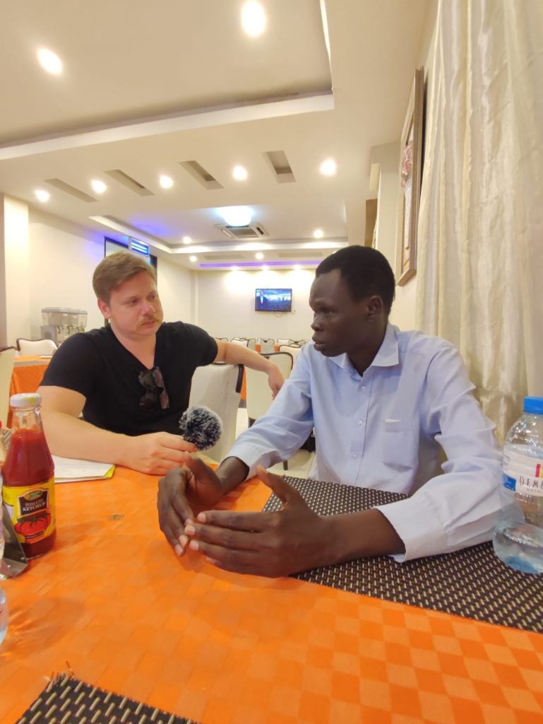 Martell interviewing YPT’s travel partner in South Sudan, Mayom Bul