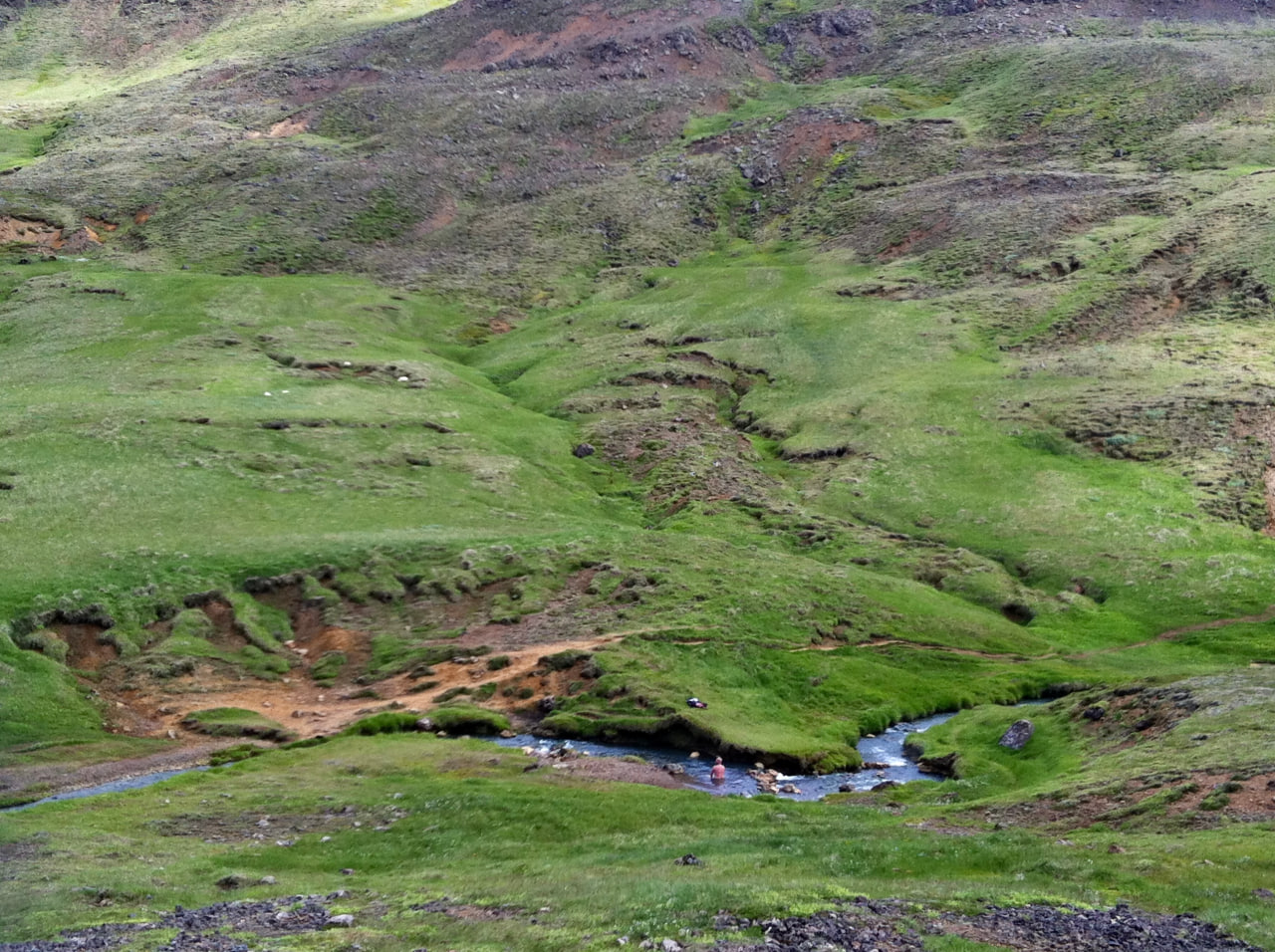 Not a swimming pool per se, the Reykjadalur Hot Spring Thermal River, 45 km from Reykjavik, is actually a junction between two rivers, hot and cold. The mix between the two flows brings the temperature of the water at around 40°C. But to experience it, you need to deserve it: to get there, you have to walk for three kilometers on a steep mountain path. The hike starts in Hveragerði and takes about an hour. The effort is well worth it, especially since the path itself is particularly beautiful. When I first went there, it was a simple river, with little traffic. The place has since been upgraded with a walkway and changing cabins.