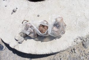 As we hurtled along the bumpy tarmac, we started noticing that several of these people were nursing plastic bags full of something that looked like big, dirty potatoes. Intrigued, we stopped next to two young boys (probably between five and ten years old), to find out what they were selling, and discovered to our surprise and delight that they weren’t big, dirty potatoes, but instead big, dirty truffles. So we each chipped in and bought a shopping bag full of truffles, for a grand total of 5 Manat (roughly $1). Why not?