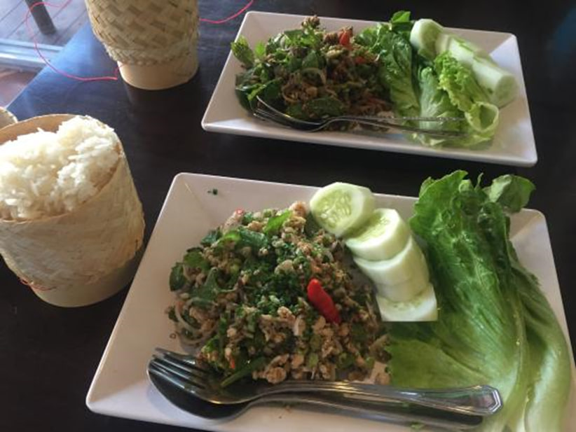 - Larb: A minced meat salad, often made with chicken or fish, mixed with fresh herbs and spices.
