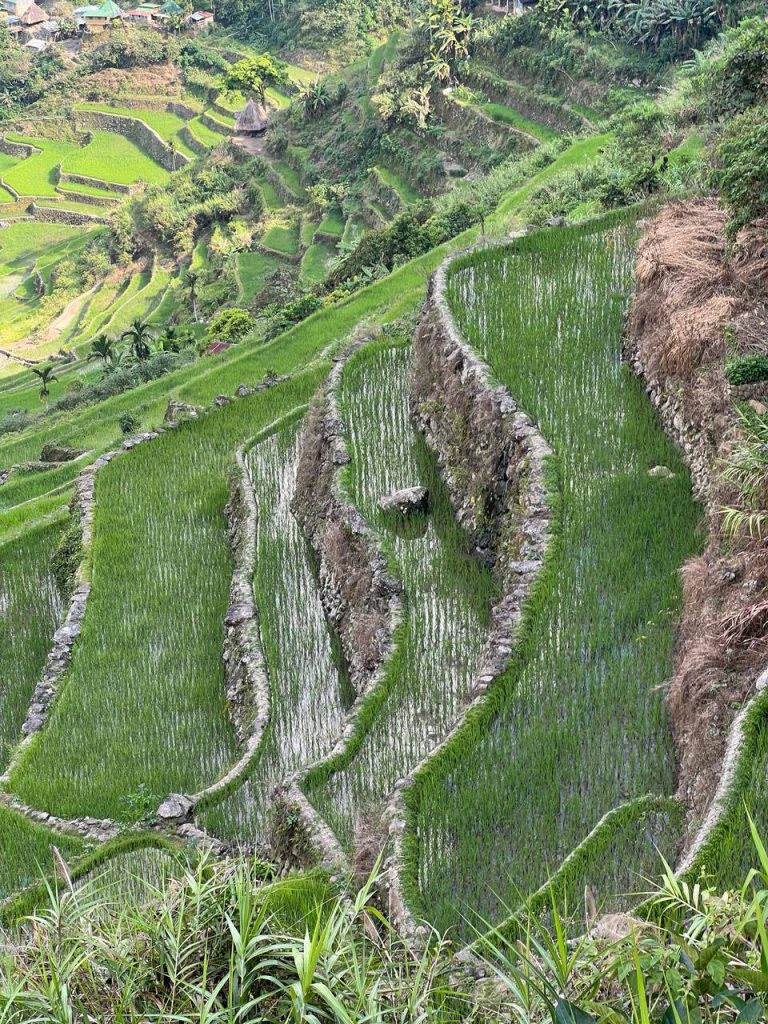 Rice terraces are a form of rice farming where terraces are used to make the most of irrigation and indeed land. They can be seen throughout the Philippines, even from when we travel through Sagada. They are also common throughout Asia.